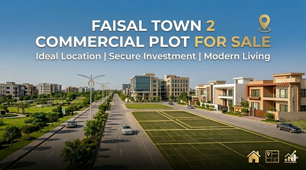 Investing in Faisal Town 2 is not just about owning land; it’s about securing a high-return investment. Over the past 2–3 years, commercial plots in this area have shown consistent appreciation trends, making it a safe and lucrative option for investors looking for long-term growth. The society’s planned commercial zones are designed to attract businesses and customers alike, creating a strong demand for rental and resale properties. Businesses that establish their outlets here can enjoy profitable returns due to the strategic location, high visibility, and the increasing commercial activity in surrounding areas. Whether you are a small investor seeking a mini commercial plot or a larger investor targeting Main Boulevard plots, the potential for maximum ROI remains substantial.